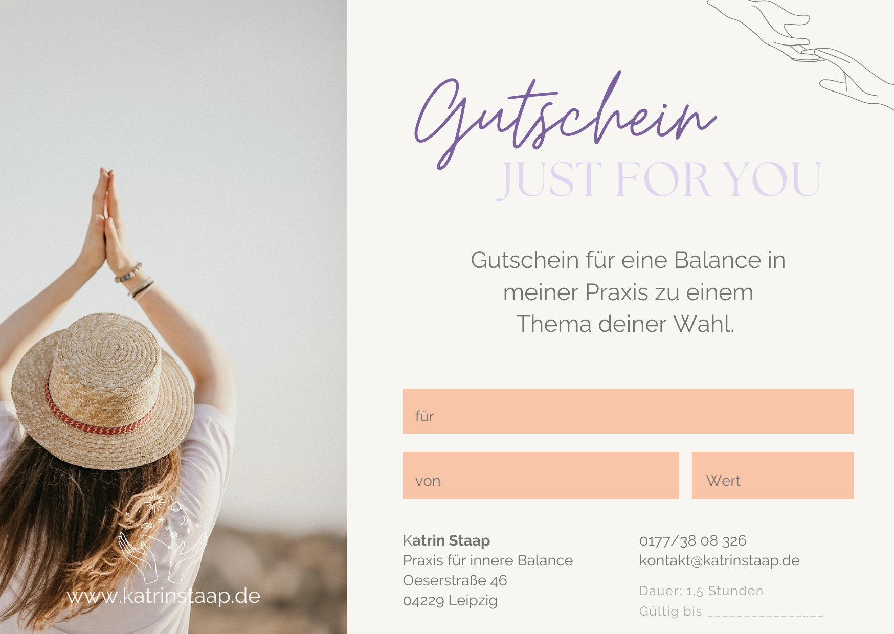Gerne kannst du dir einen Gutschein ausstellen lassen. Schreibe mich einfach gerne an.